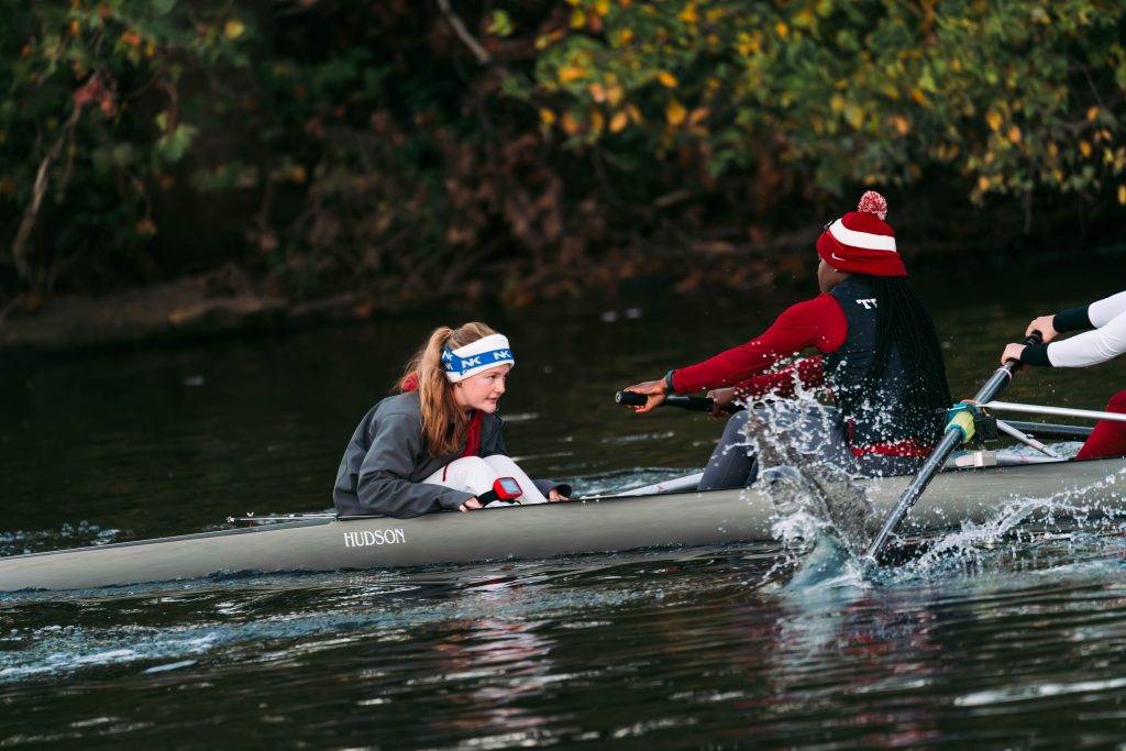 Sport and entertainment management major Cassidy Burns, class of 2027, is a member of the Temple Owls women’s rowing team.